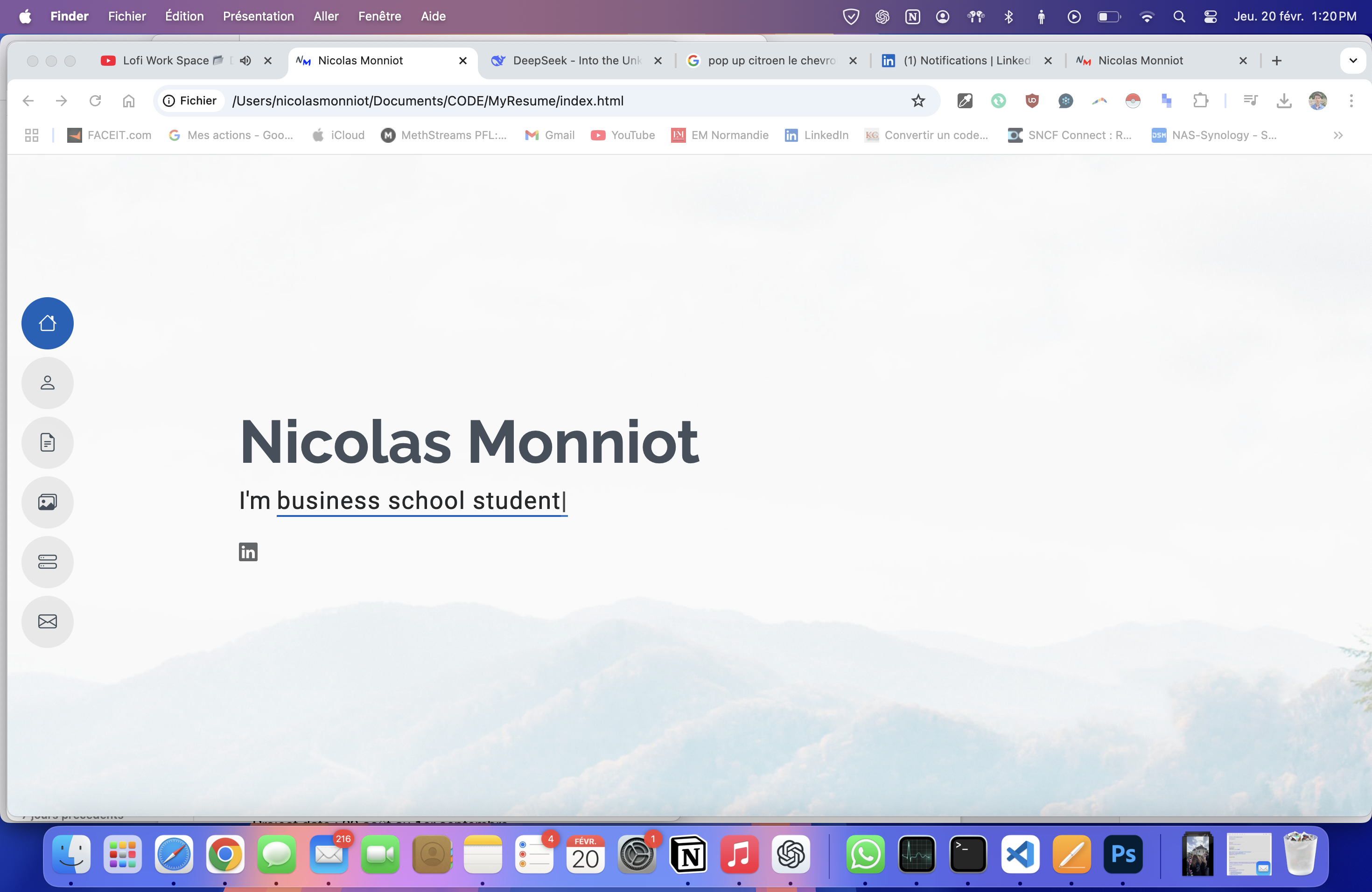 Depuis mes 15 ans, en parallèle de ma passion pour la tech et les ordinateurs, je développe des sites web par plaisir. J’ai commencé avec un site pour une entreprise de chambres d’hôtes et, aujourd’hui, je le fais pour enrichir mon CV.